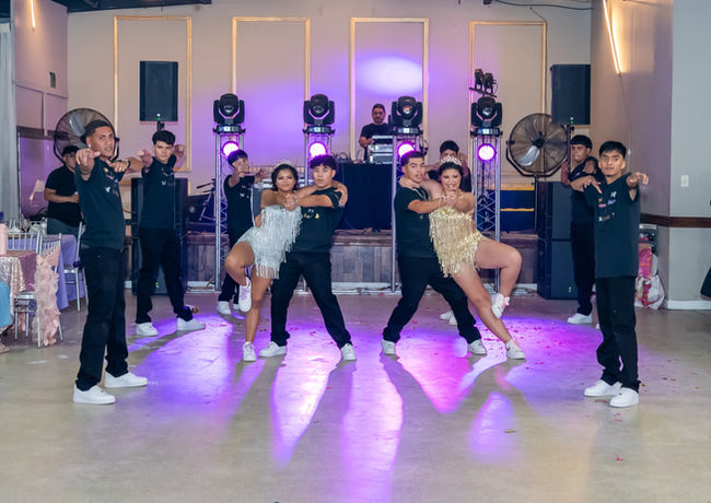 Our surprise dances are packed with excitement, high-energy choreography, playful moments, daring stunts, and unforgettable surprises—taking the quinceañera on a thrilling journey that brings her dreams to life while showcasing her unique personality. With unexpected twists that keep the crowd guessing and cheering, she is sure to shine like the amazing star she is.